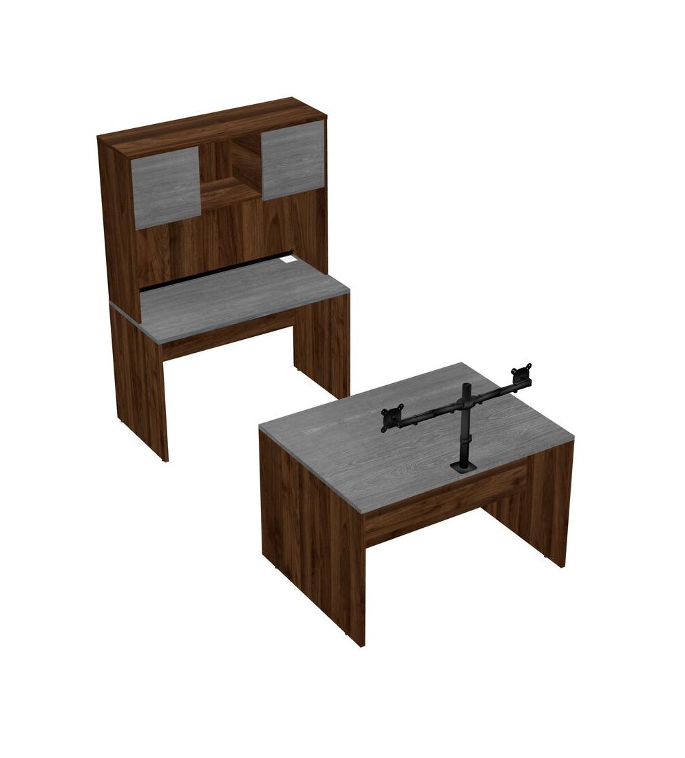 Office Parallel Desk Credenza Desk + Hutch + Monitor Arm (double Arms)