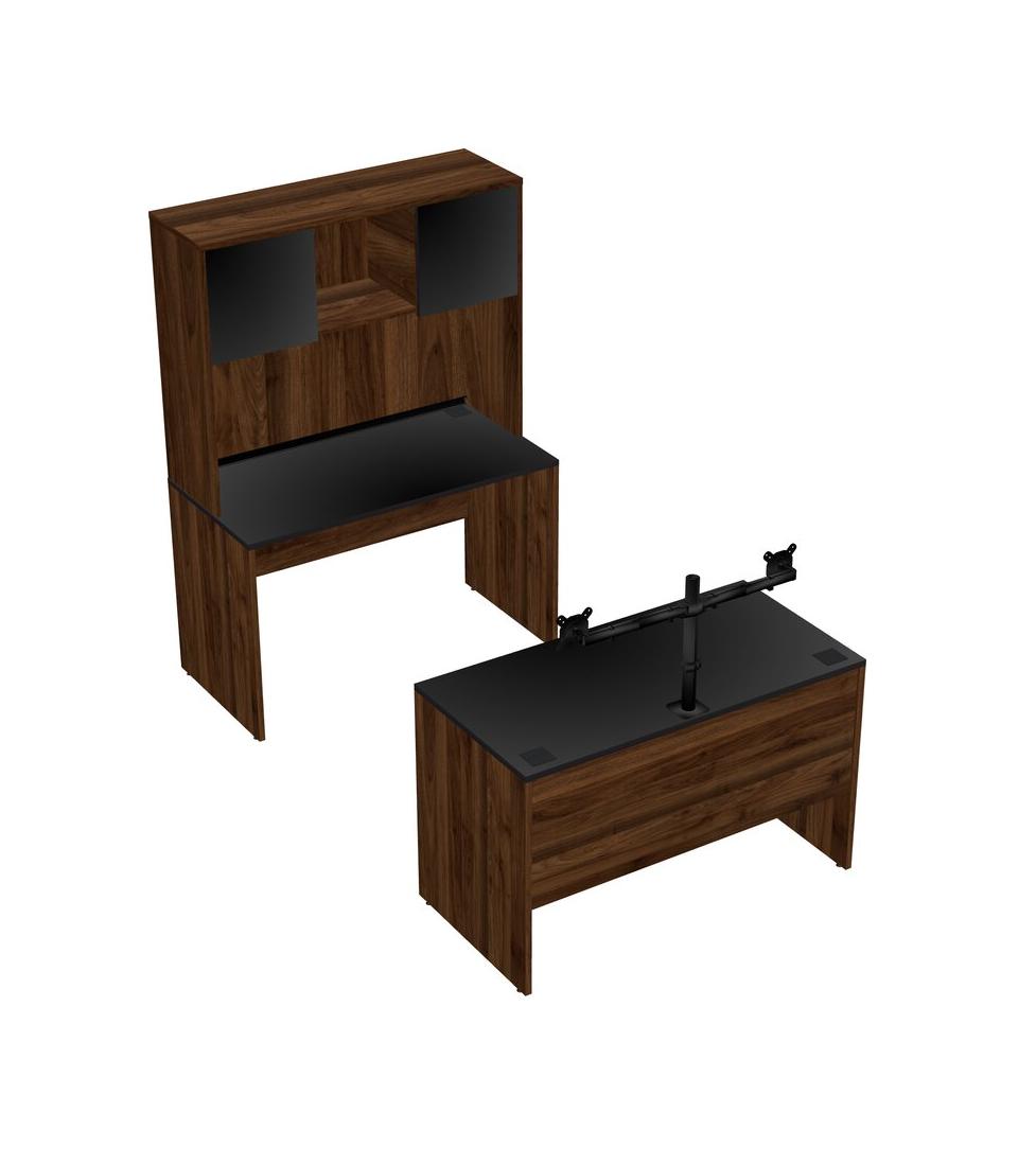 Office Parallel Desk Credenza Desk + Hutch + Monitor Arm (double Arms)