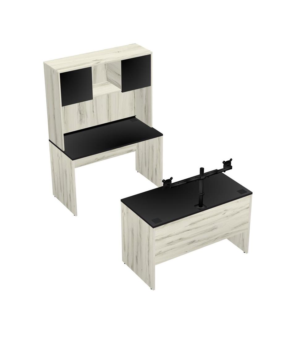 Office Parallel Desk Credenza Desk + Hutch + Monitor Arm (double Arms)