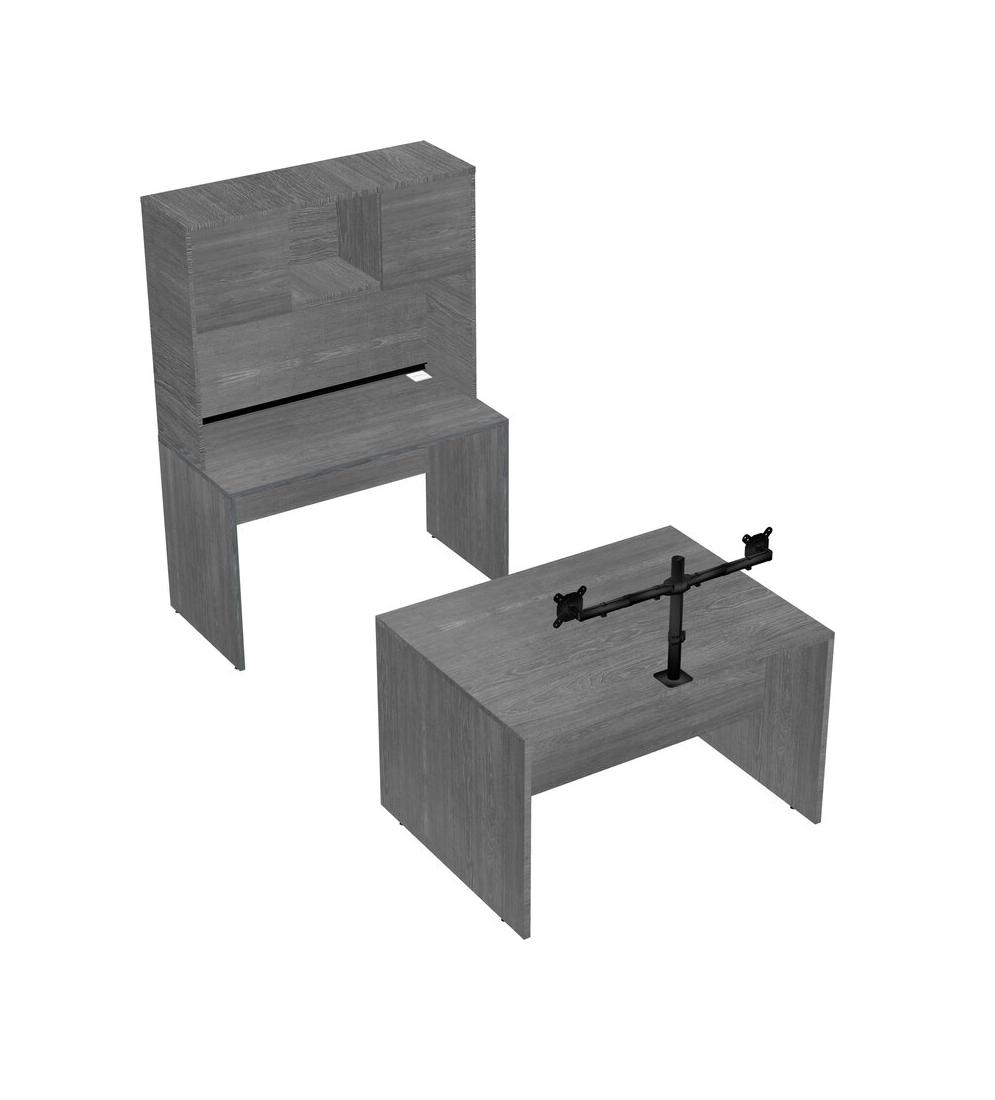 Office Parallel Desk Credenza Desk + Hutch + Monitor Arm (double Arms)