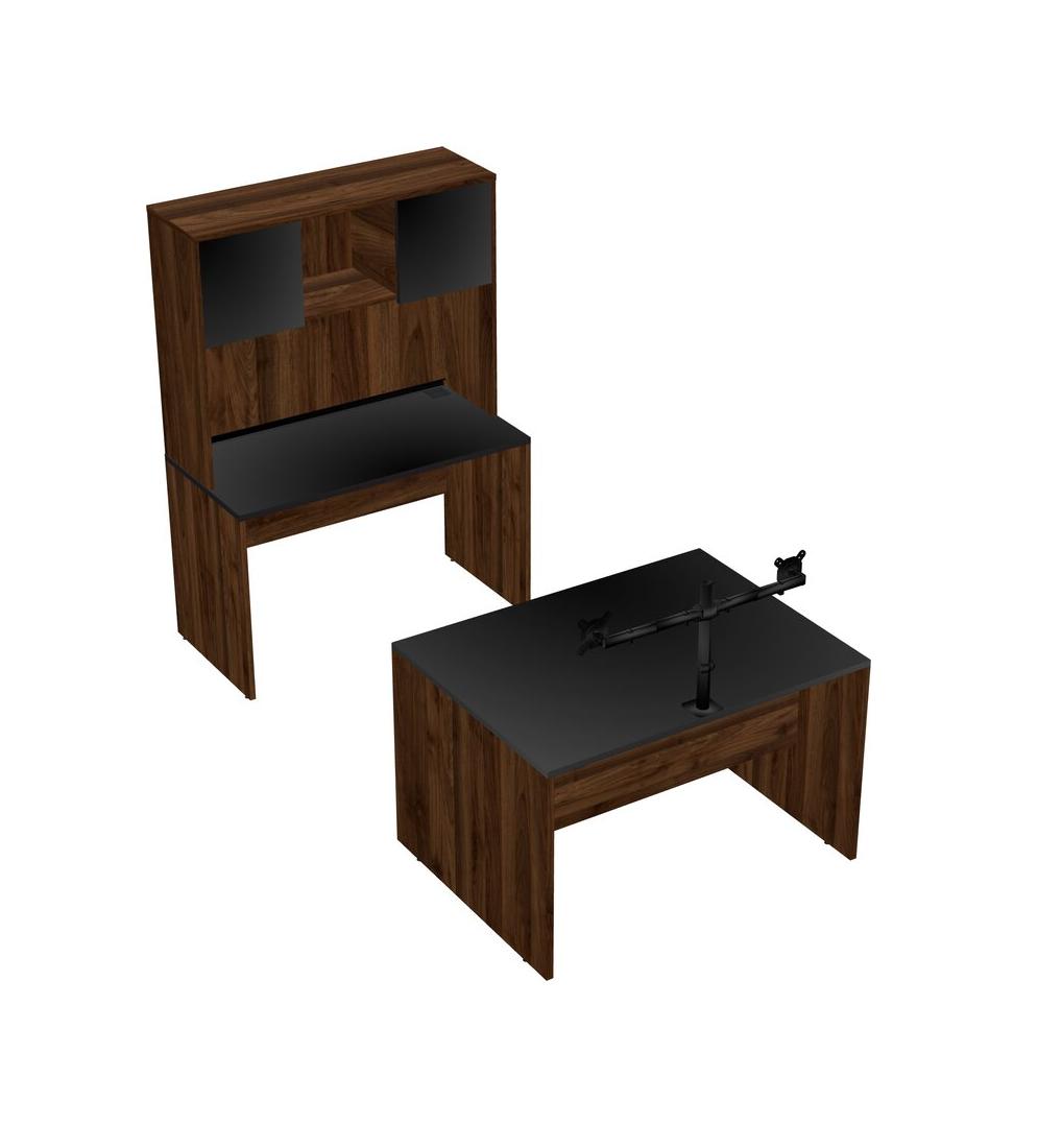 Office Parallel Desk Credenza Desk + Hutch + Monitor Arm (double Arms)