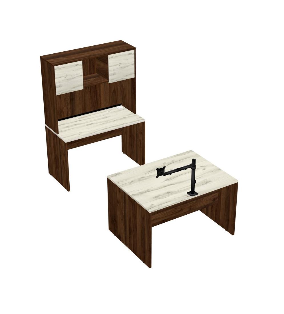 Office Parallel Desk Credenza Desk + Hutch + Monitor Arm (single Arm)