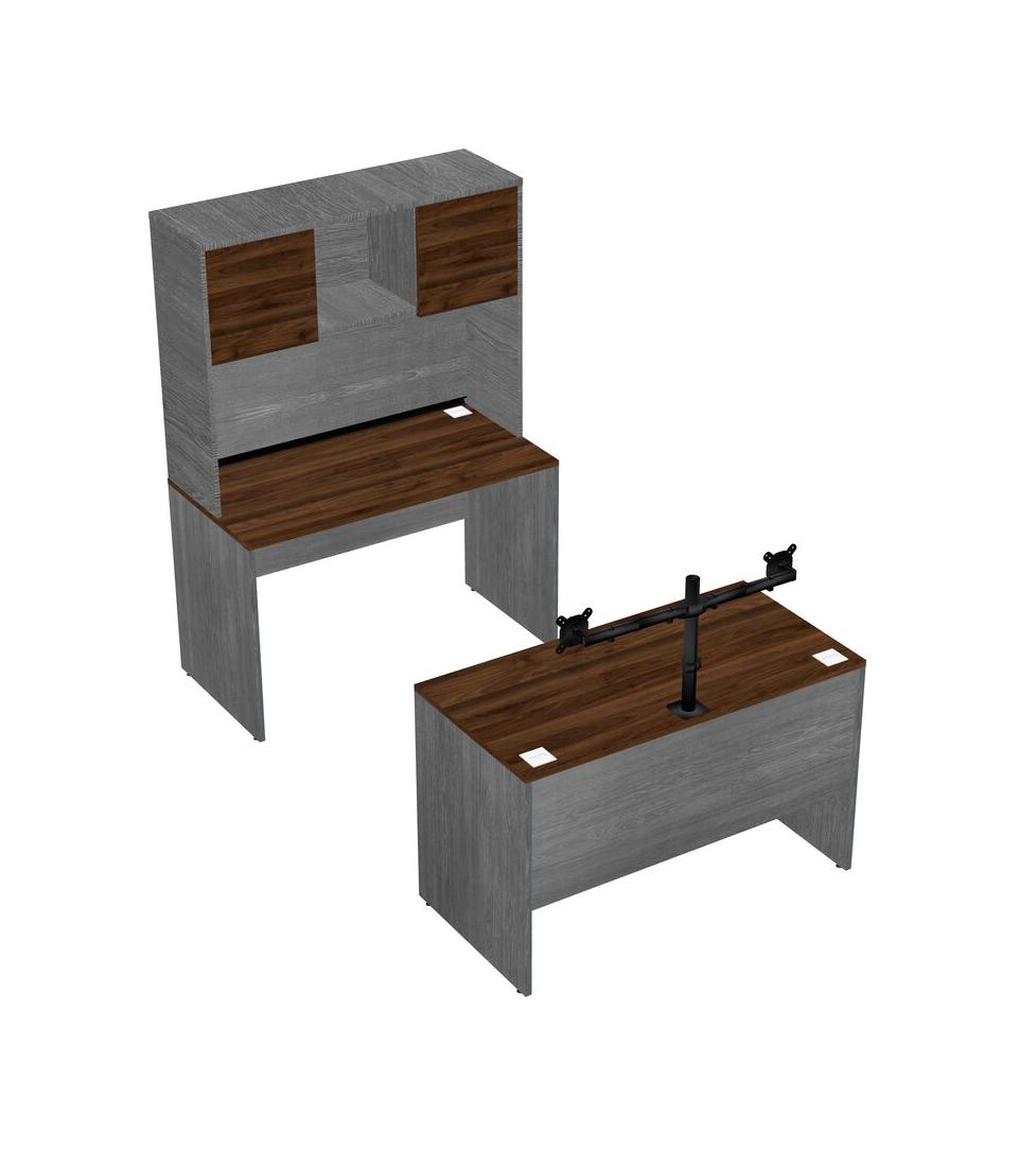 Office Parallel Desk Credenza Desk + Hutch + Monitor Arm (double Arms)