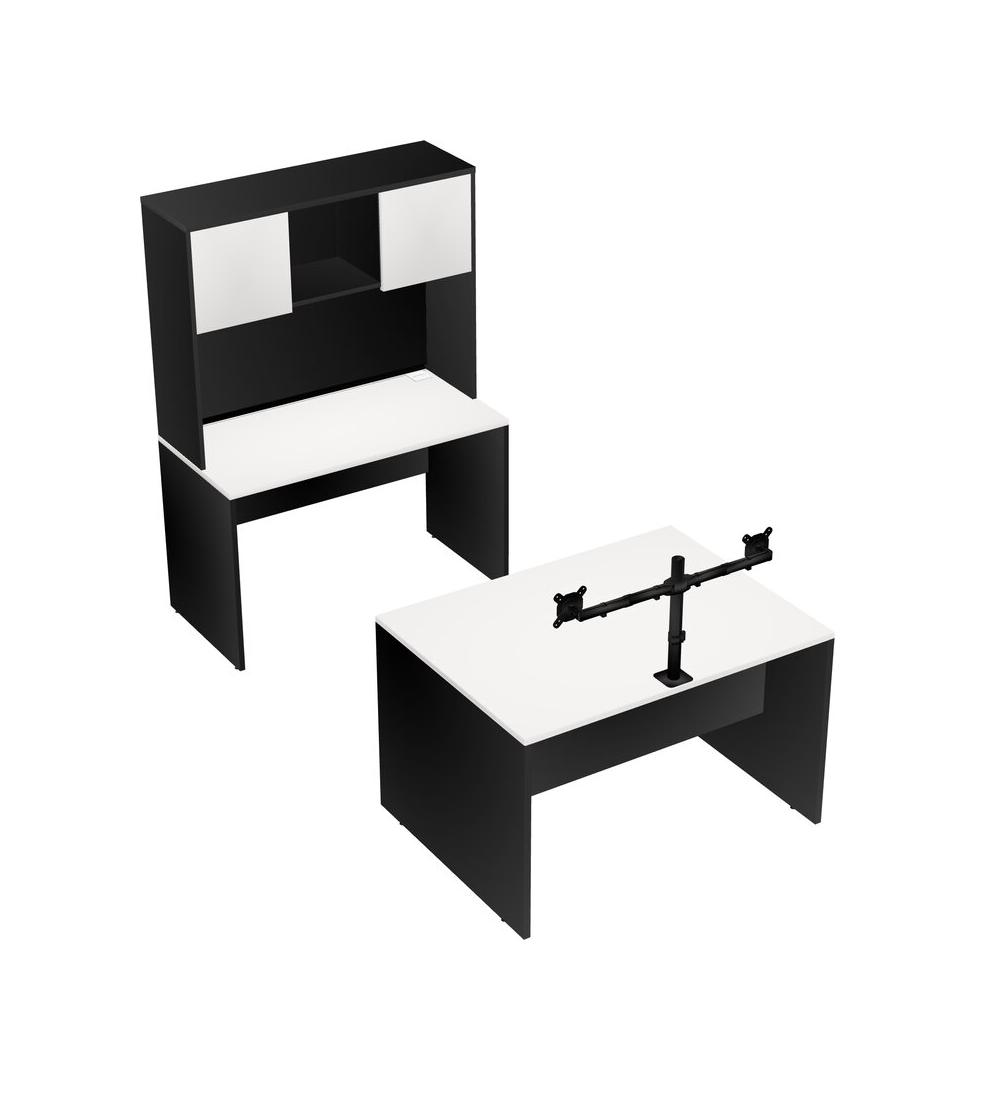 Office Parallel Desk Credenza Desk + Hutch + Monitor Arm (double Arms)