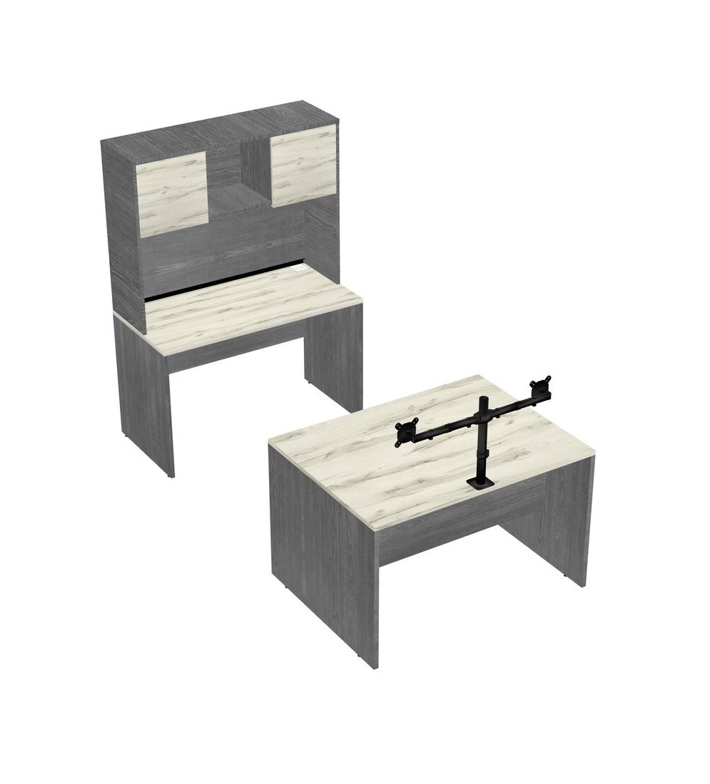 Office Parallel Desk Credenza Desk + Hutch + Monitor Arm (double Arms)