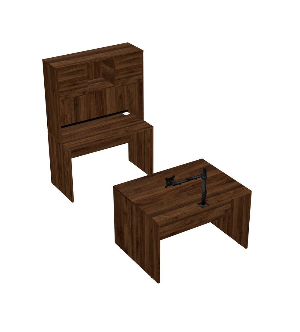 Office Parallel Desk Credenza Desk + Hutch + Monitor Arm (single Arm)