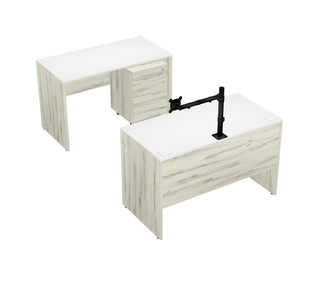 Office Parallel Desk Credenza Desk + Wooden Mobile Drawers + Monitor Arm (single Arm)