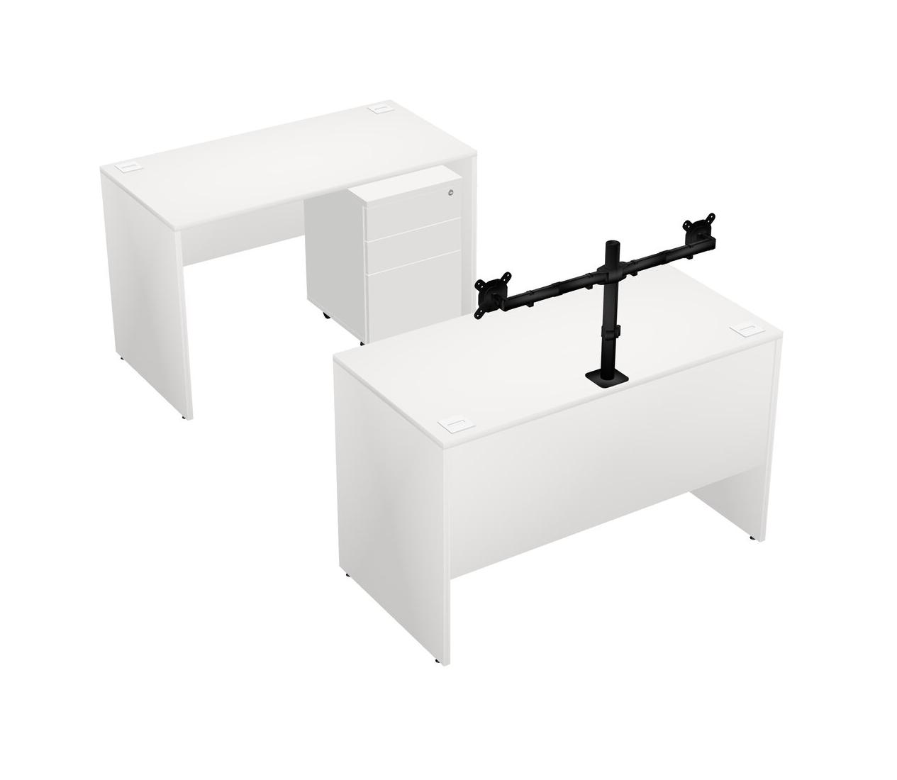 Office Parallel Desk Credenza Desk + Wooden Mobile Drawers + Monitor Arm (double Arms)