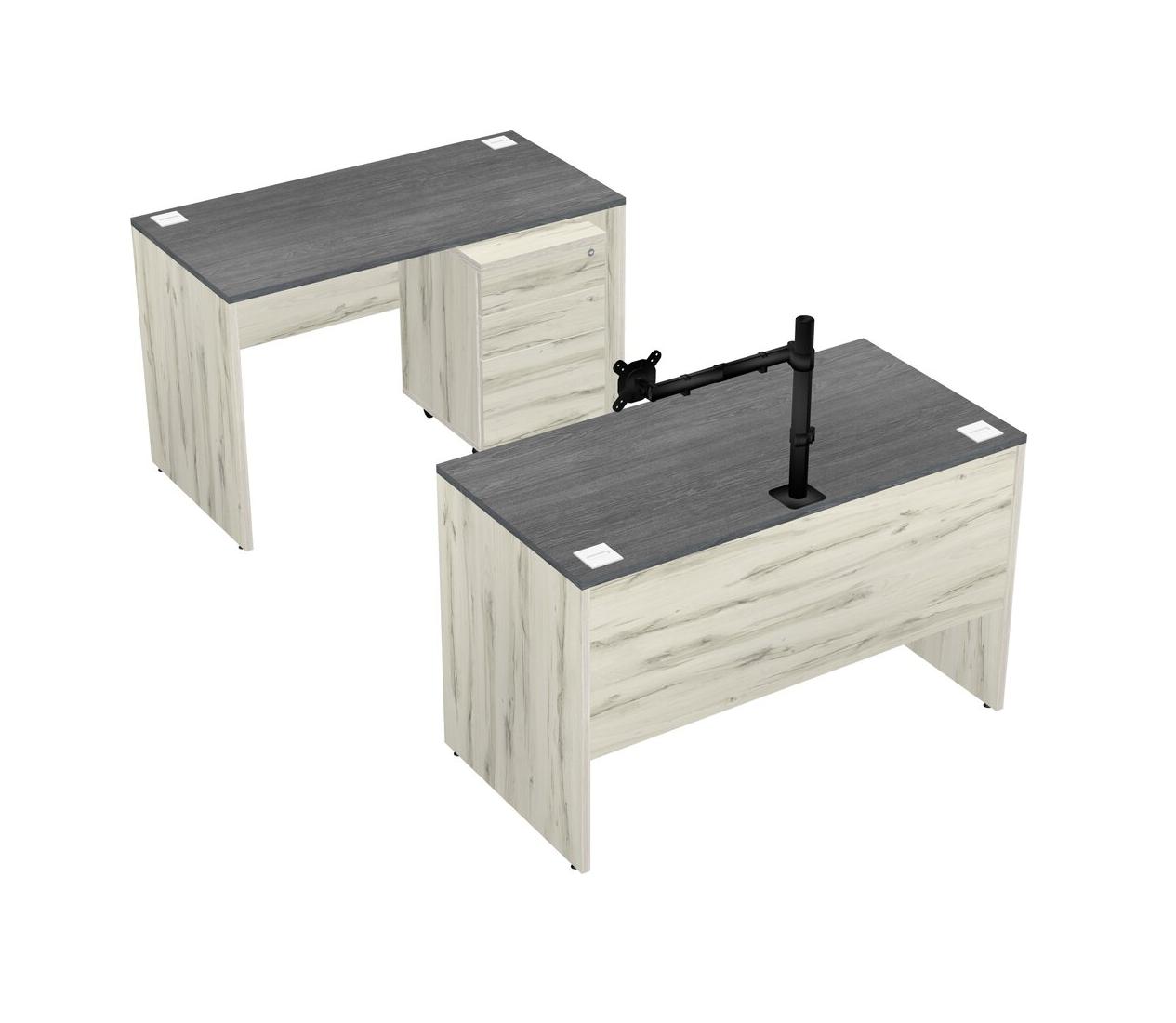 Office Parallel Desk Credenza Desk + Wooden Mobile Drawers + Monitor Arm (single Arm)