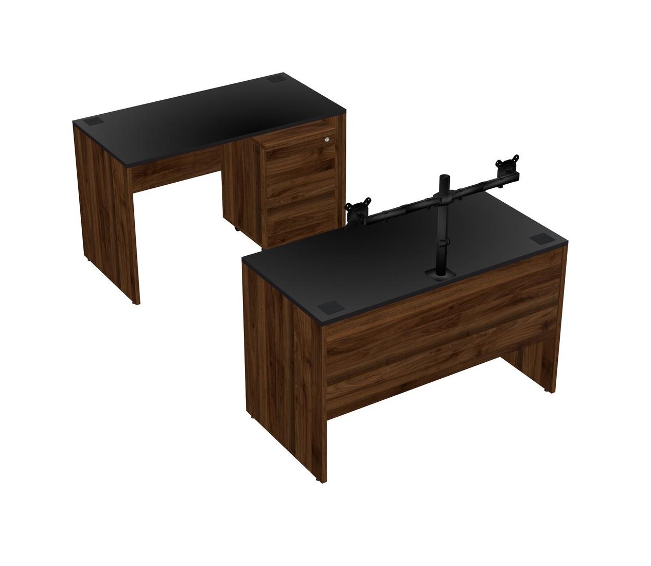 Office Parallel Desk Credenza Desk + Wooden Mobile Drawers + Monitor Arm (double Arms)