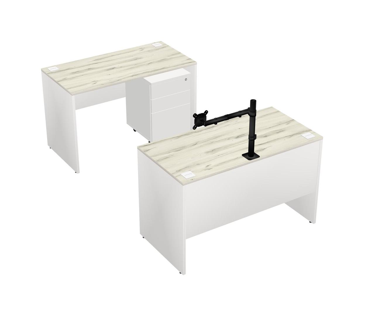 Office Parallel Desk Credenza Desk + Wooden Mobile Drawers + Monitor Arm (single Arm)