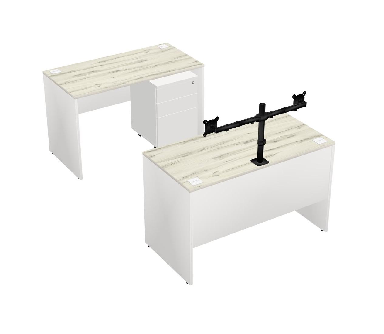 Office Parallel Desk Credenza Desk + Wooden Mobile Drawers + Monitor Arm (double Arms)