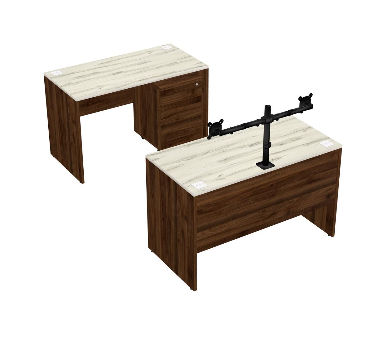 Office Parallel Desk Credenza Desk + Wooden Mobile Drawers + Monitor Arm (double Arms)