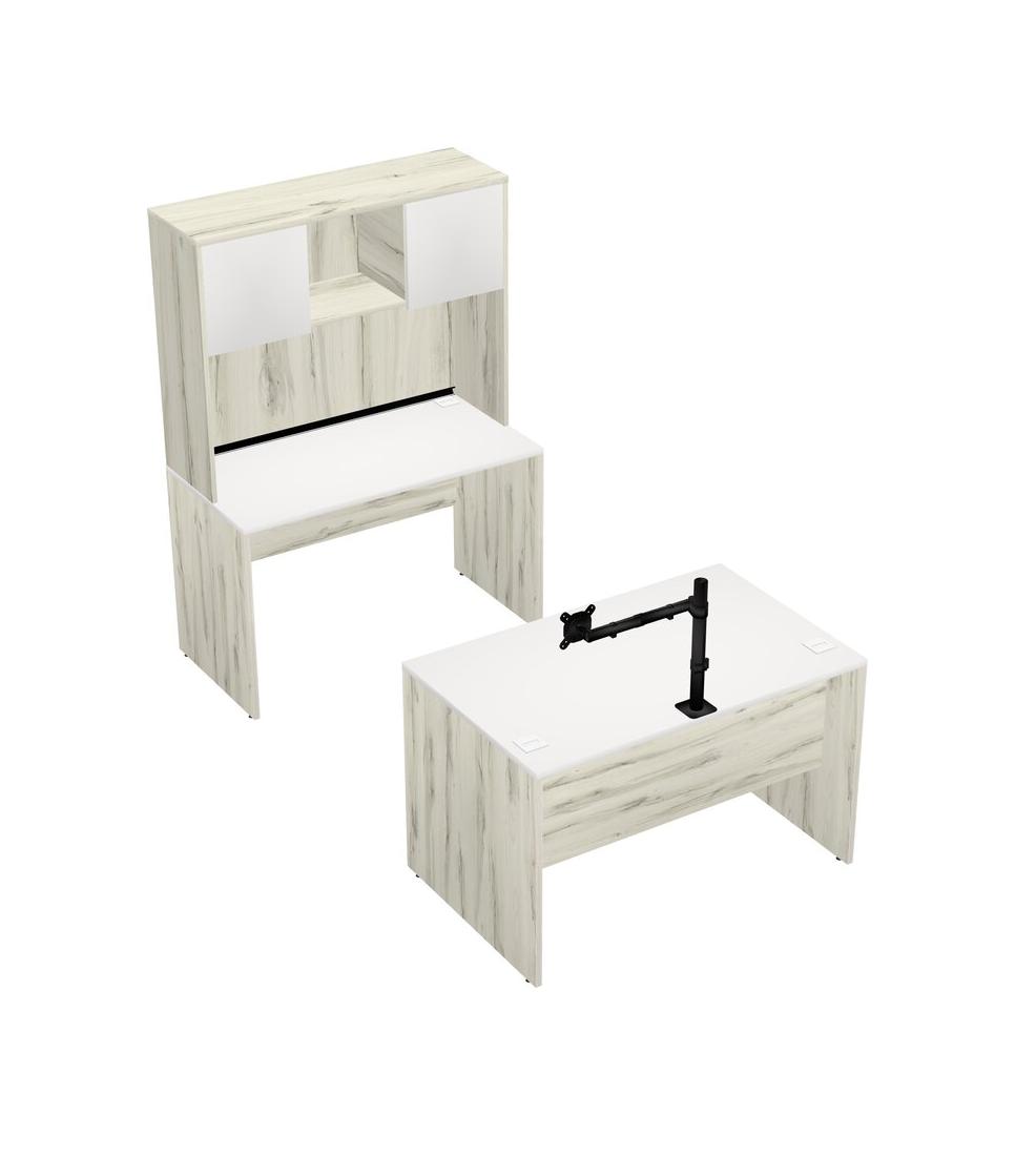 Office Parallel Desk Credenza Desk + Hutch + Monitor Arm (single Arm)