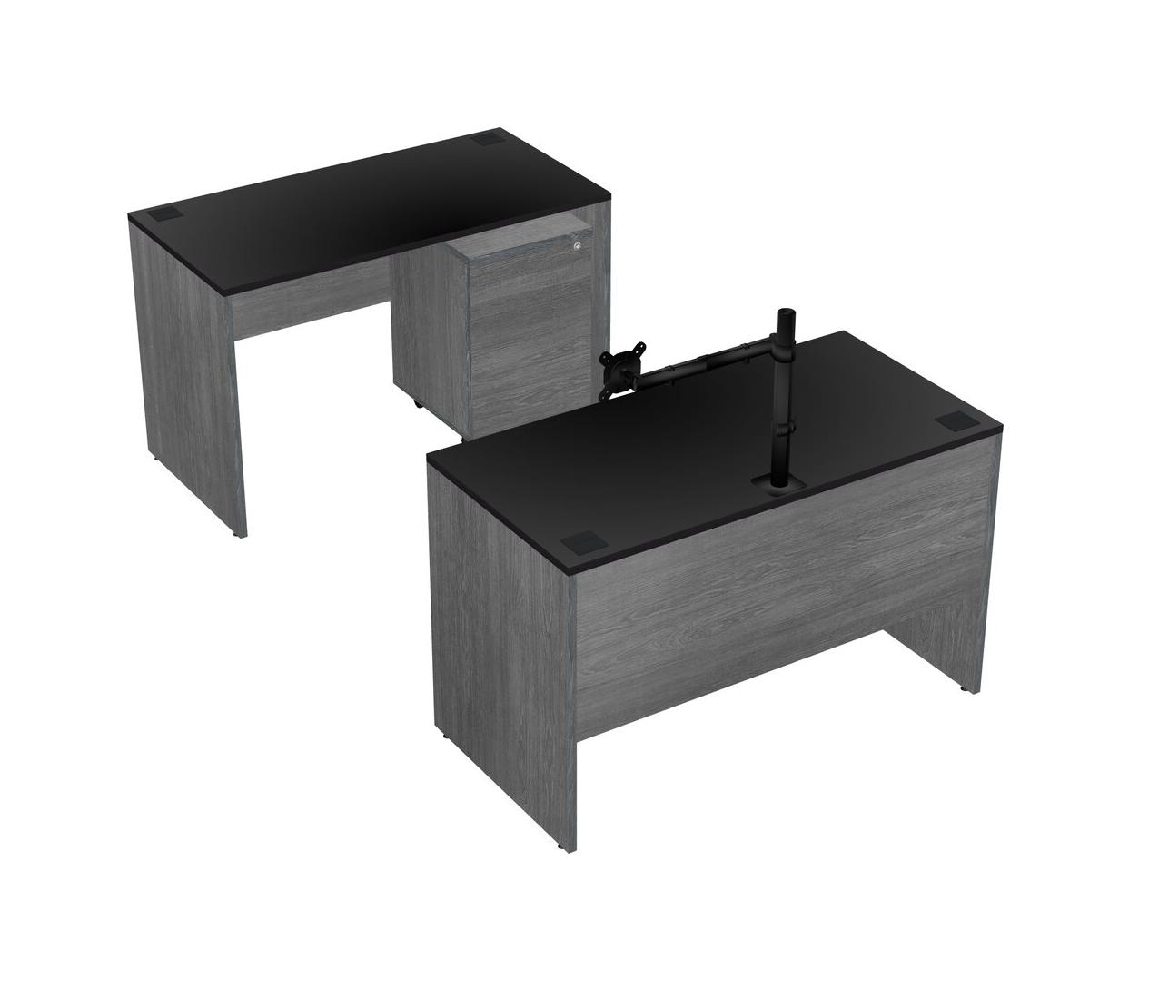 Office Parallel Desk Credenza Desk + Wooden Mobile Drawers + Monitor Arm (single Arm)