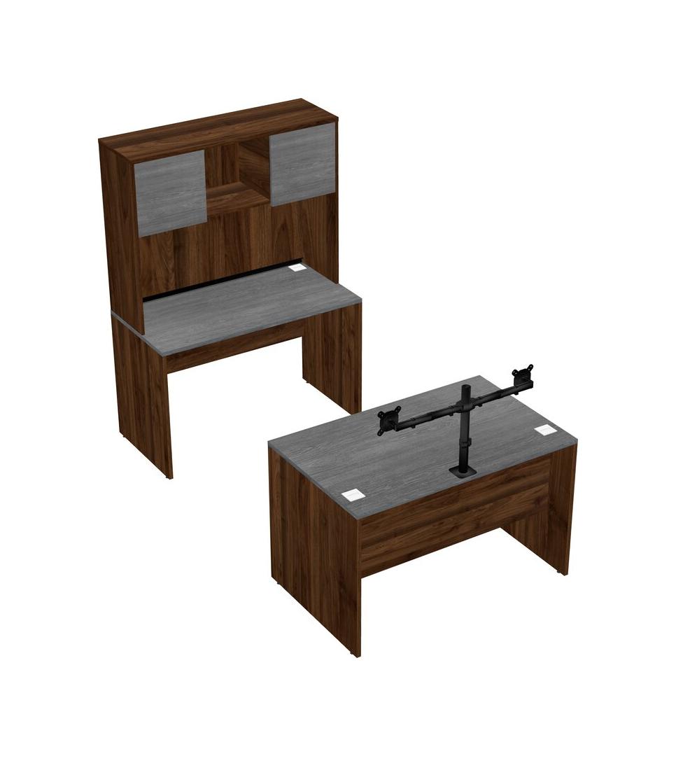 Office Parallel Desk Credenza Desk + Hutch + Monitor Arm (double Arms)