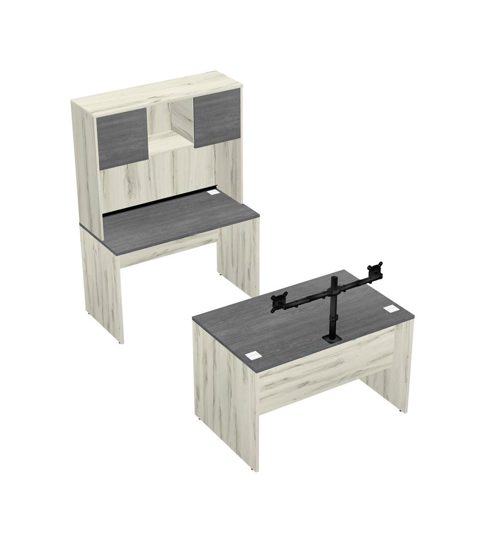 Office Parallel Desk Credenza Desk + Hutch + Monitor Arm (double Arms)
