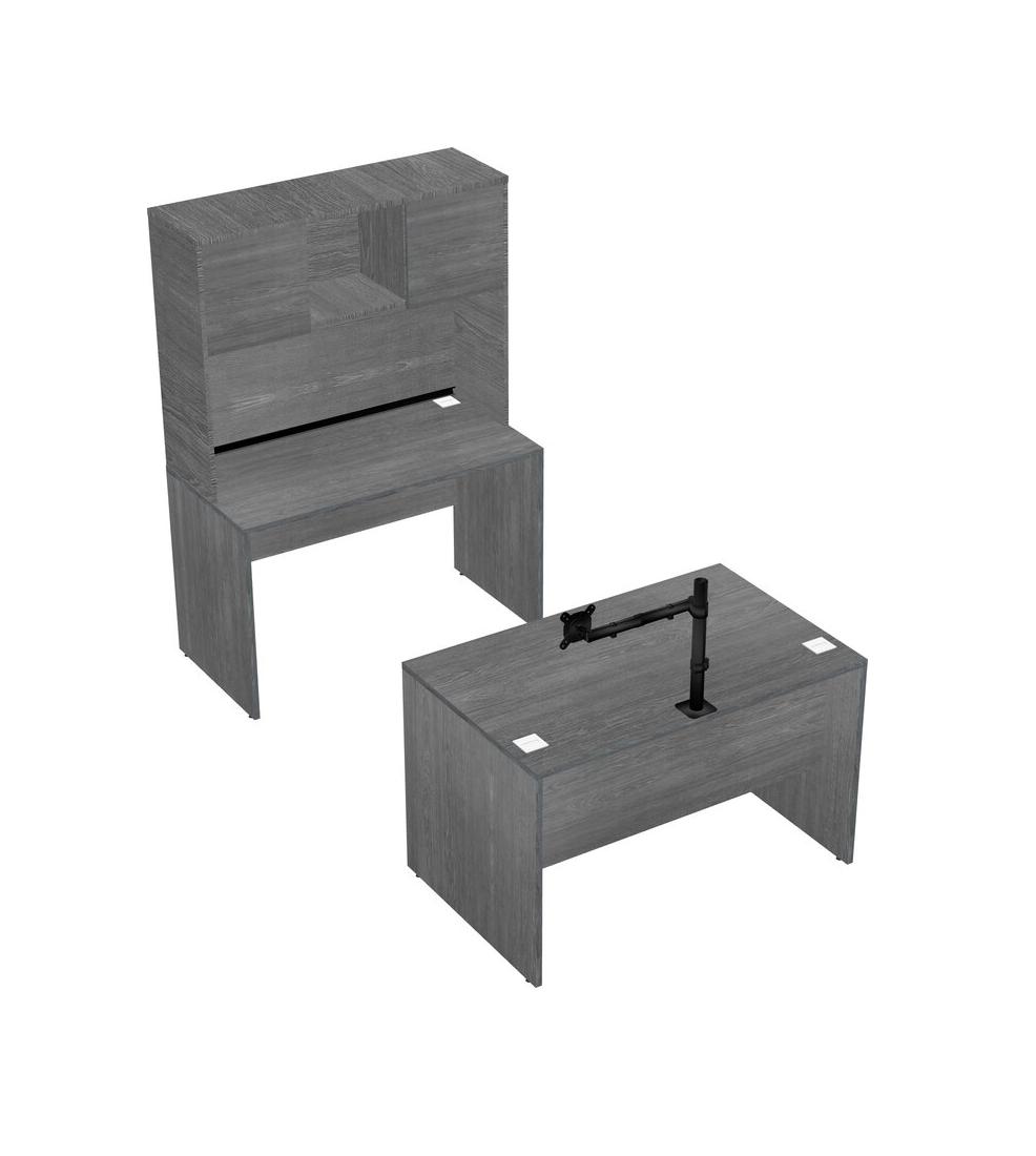 Office Parallel Desk Credenza Desk + Hutch + Monitor Arm (single Arm)