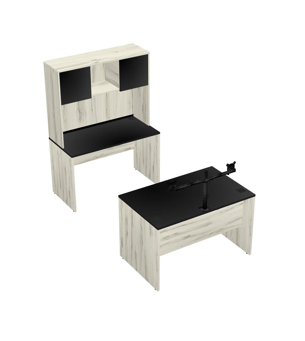 Office Parallel Desk Credenza Desk + Hutch + Monitor Arm (double Arms)