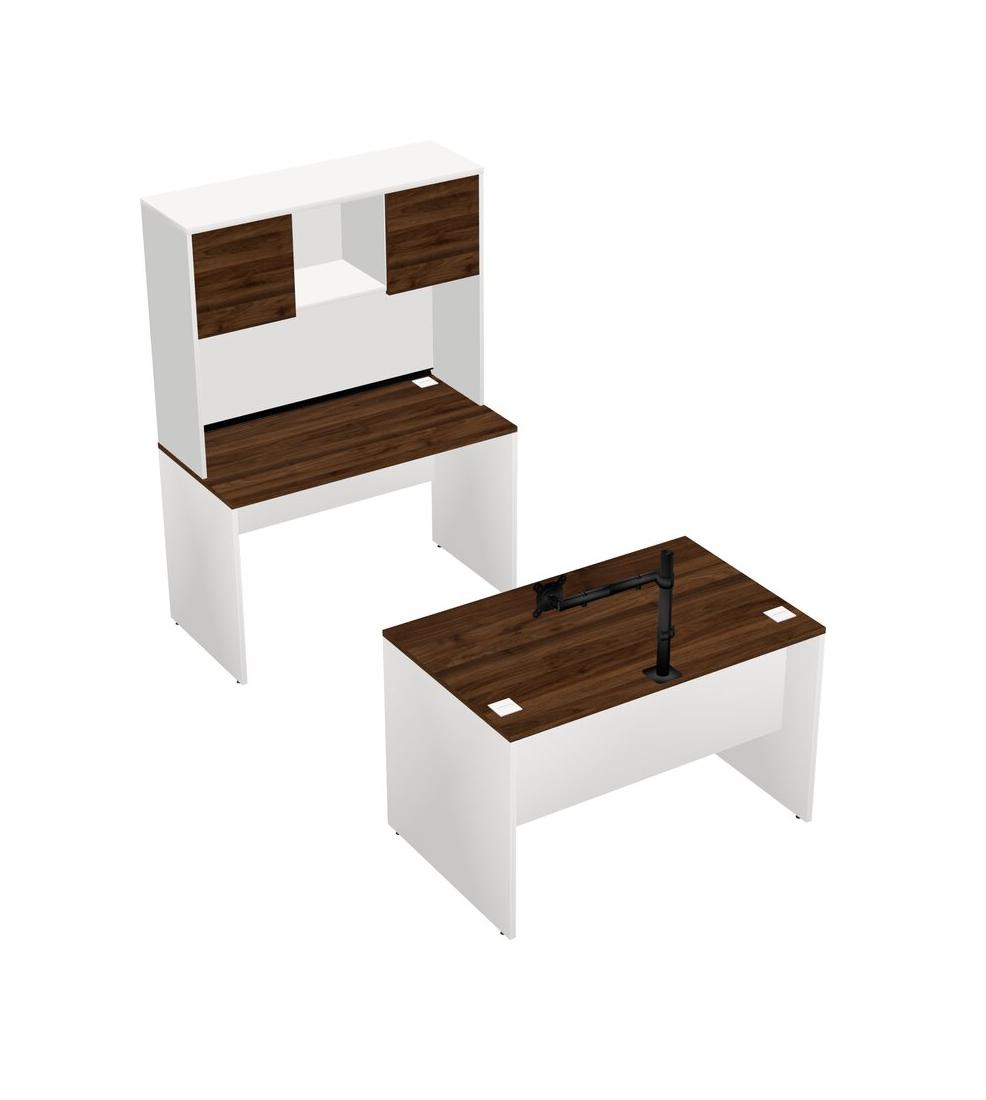 Office Parallel Desk Credenza Desk + Hutch + Monitor Arm (single Arm)