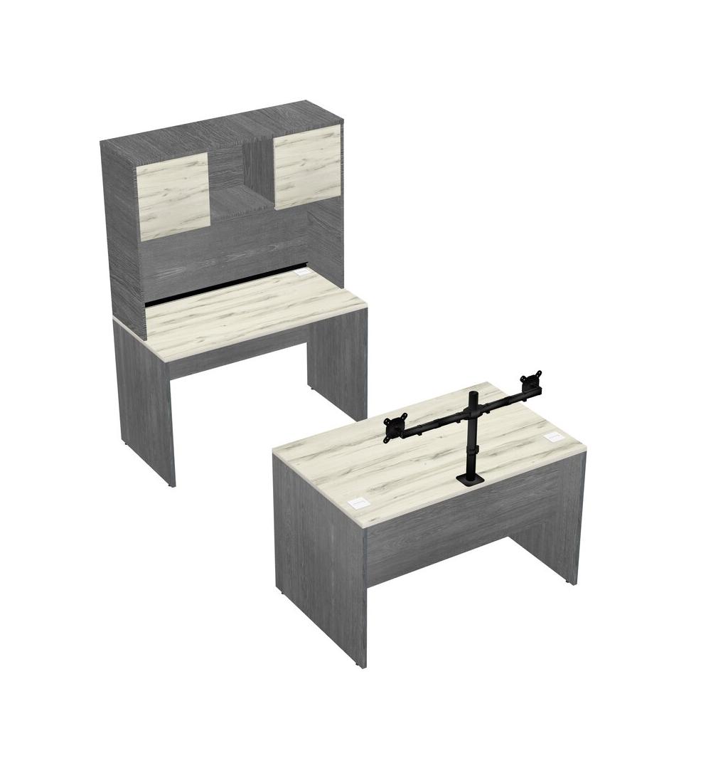 Office Parallel Desk Credenza Desk + Hutch + Monitor Arm (double Arms)
