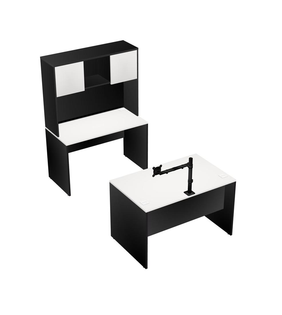 Office Parallel Desk Credenza Desk + Hutch + Monitor Arm (single Arm)