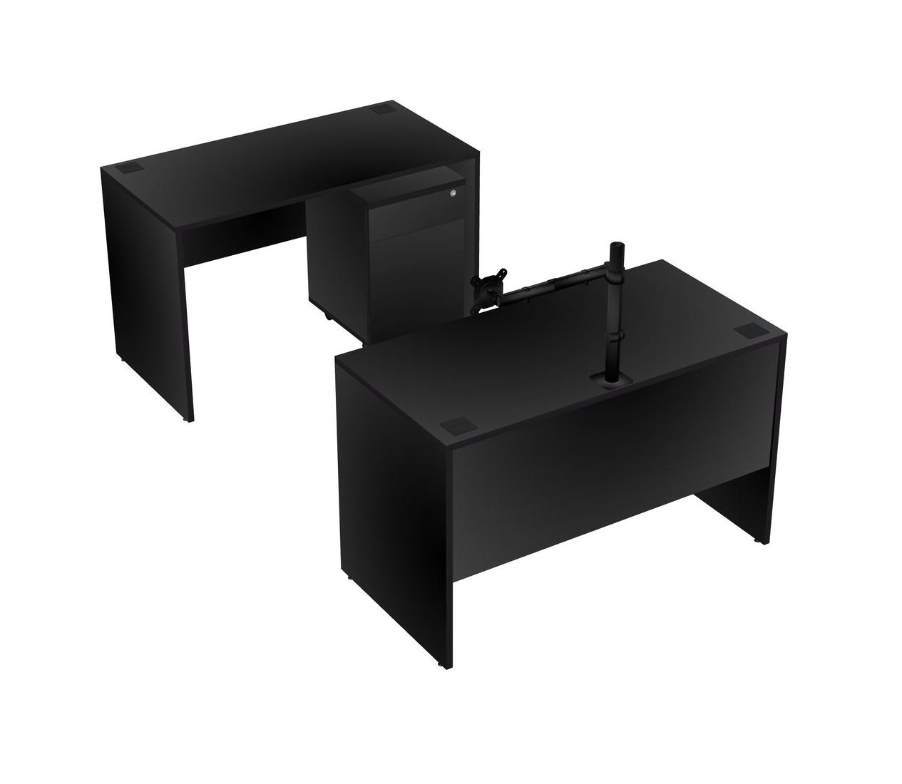 Office Parallel Desk Credenza Desk + Wooden Mobile Drawers + Monitor Arm (single Arm)