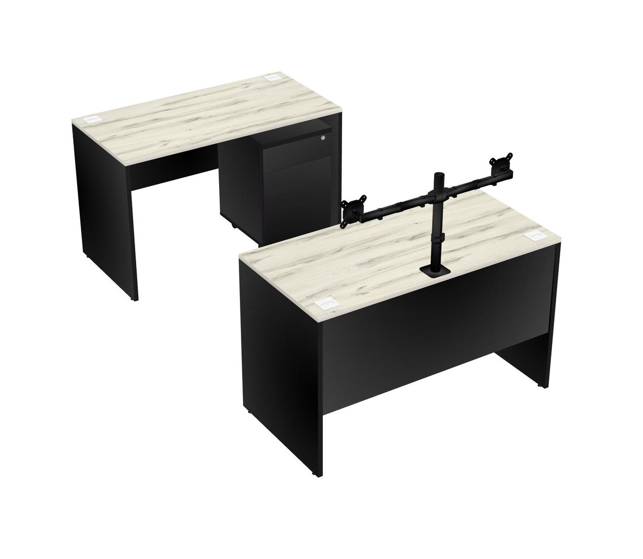 Office Parallel Desk Credenza Desk + Wooden Mobile Drawers + Monitor Arm (double Arms)