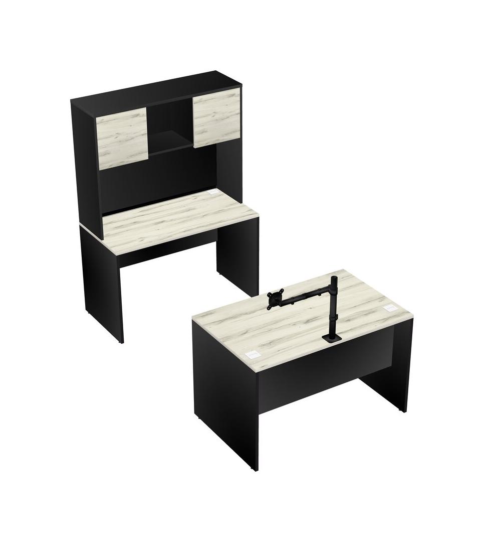 Office Parallel Desk Credenza Desk + Hutch + Monitor Arm (single Arm)