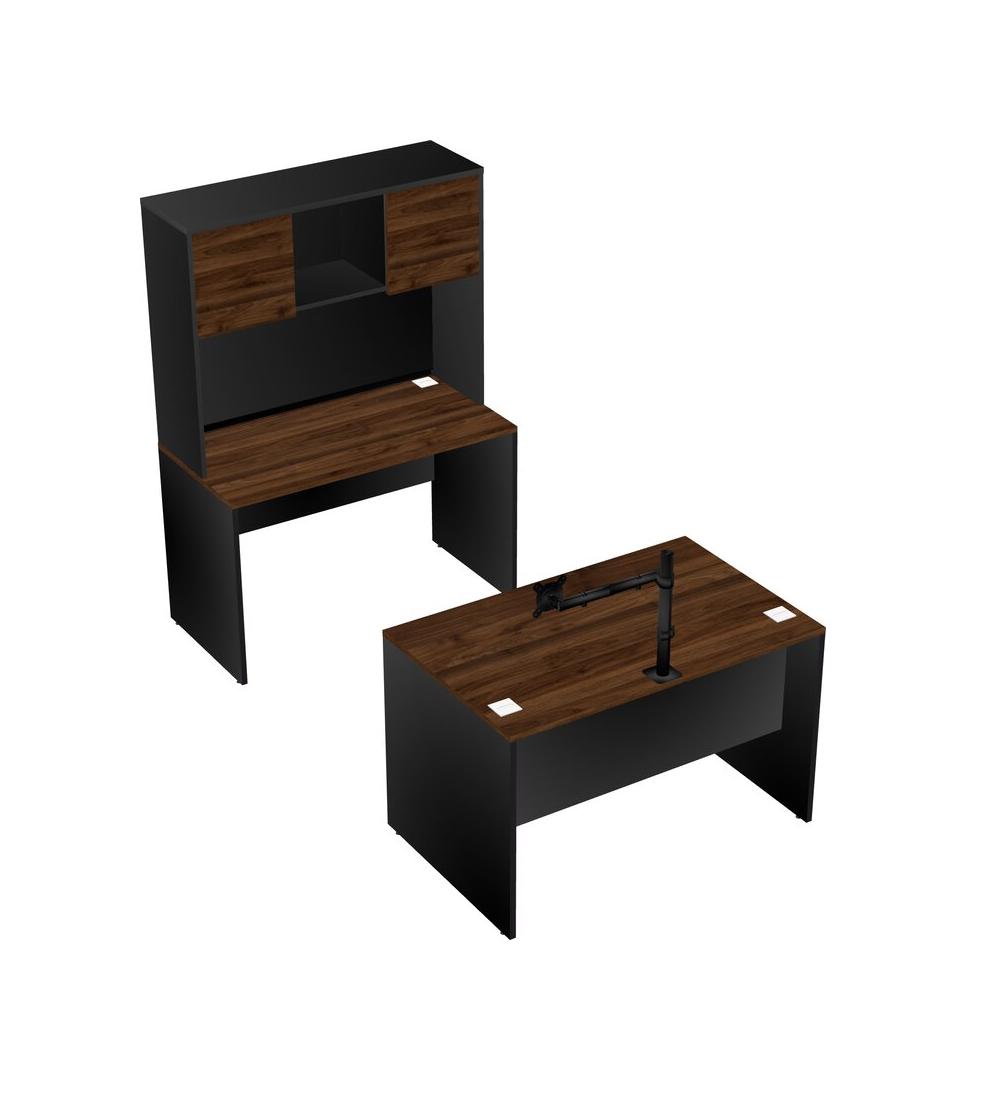 Office Parallel Desk Credenza Desk + Hutch + Monitor Arm (single Arm)