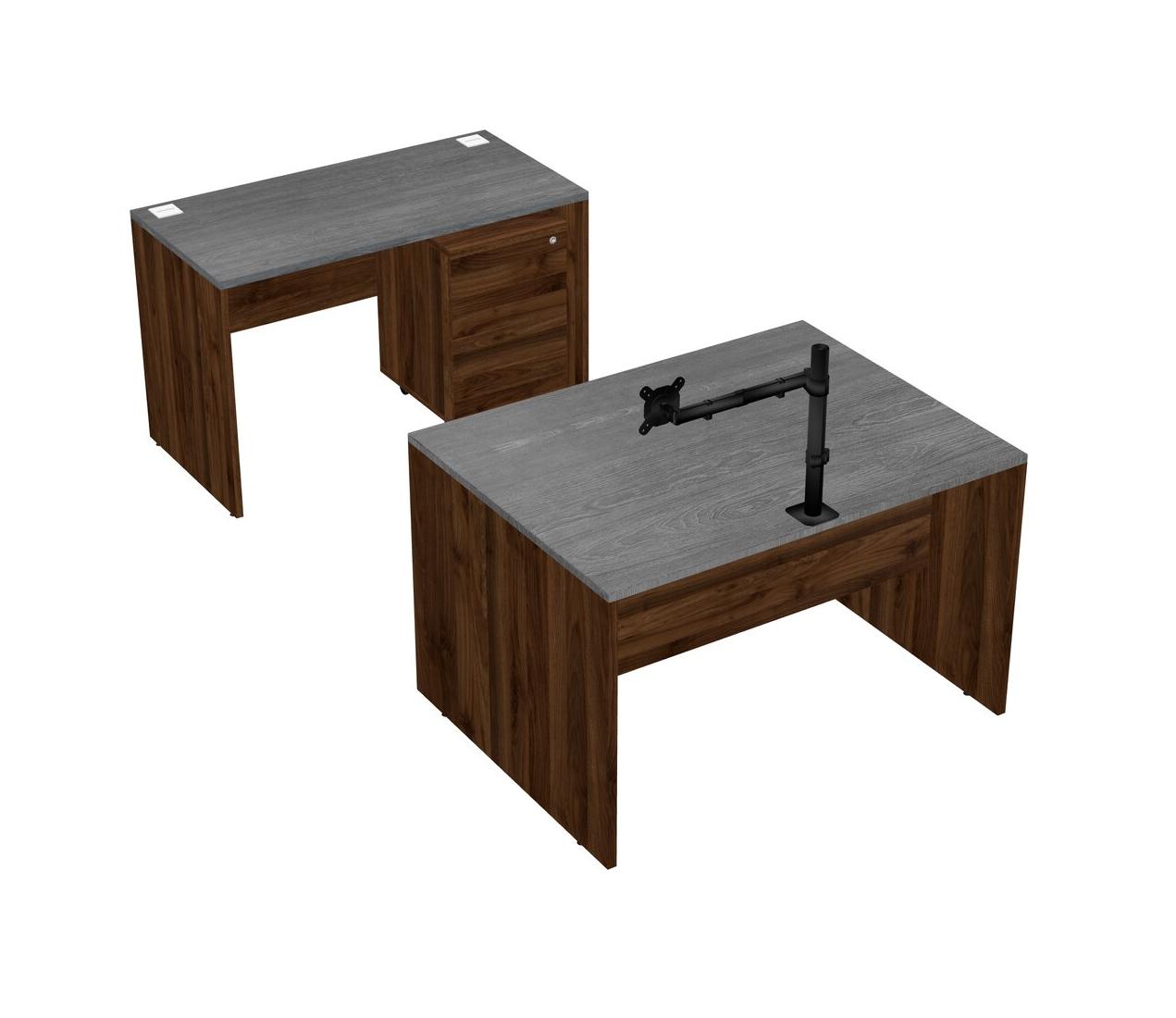 Office Parallel Desk Credenza Desk + Wooden Mobile Drawers + Monitor Arm (single Arm)