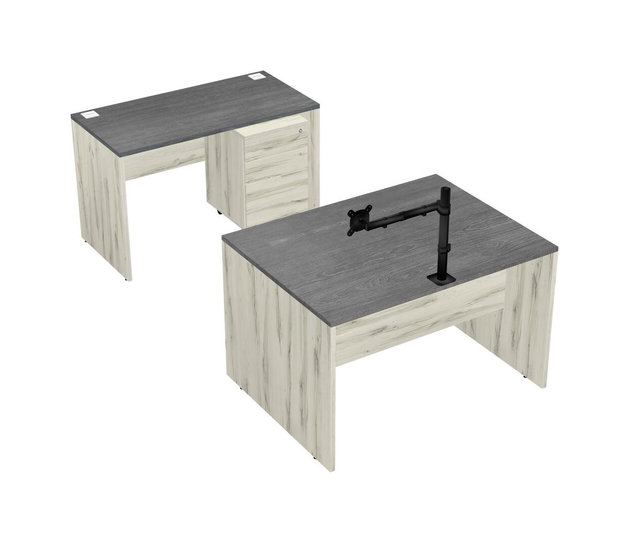 Office Parallel Desk Credenza Desk + Wooden Mobile Drawers + Monitor Arm (single Arm)