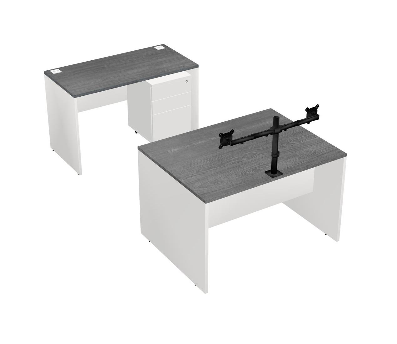 Office Parallel Desk Credenza Desk + Wooden Mobile Drawers + Monitor Arm (double Arms)