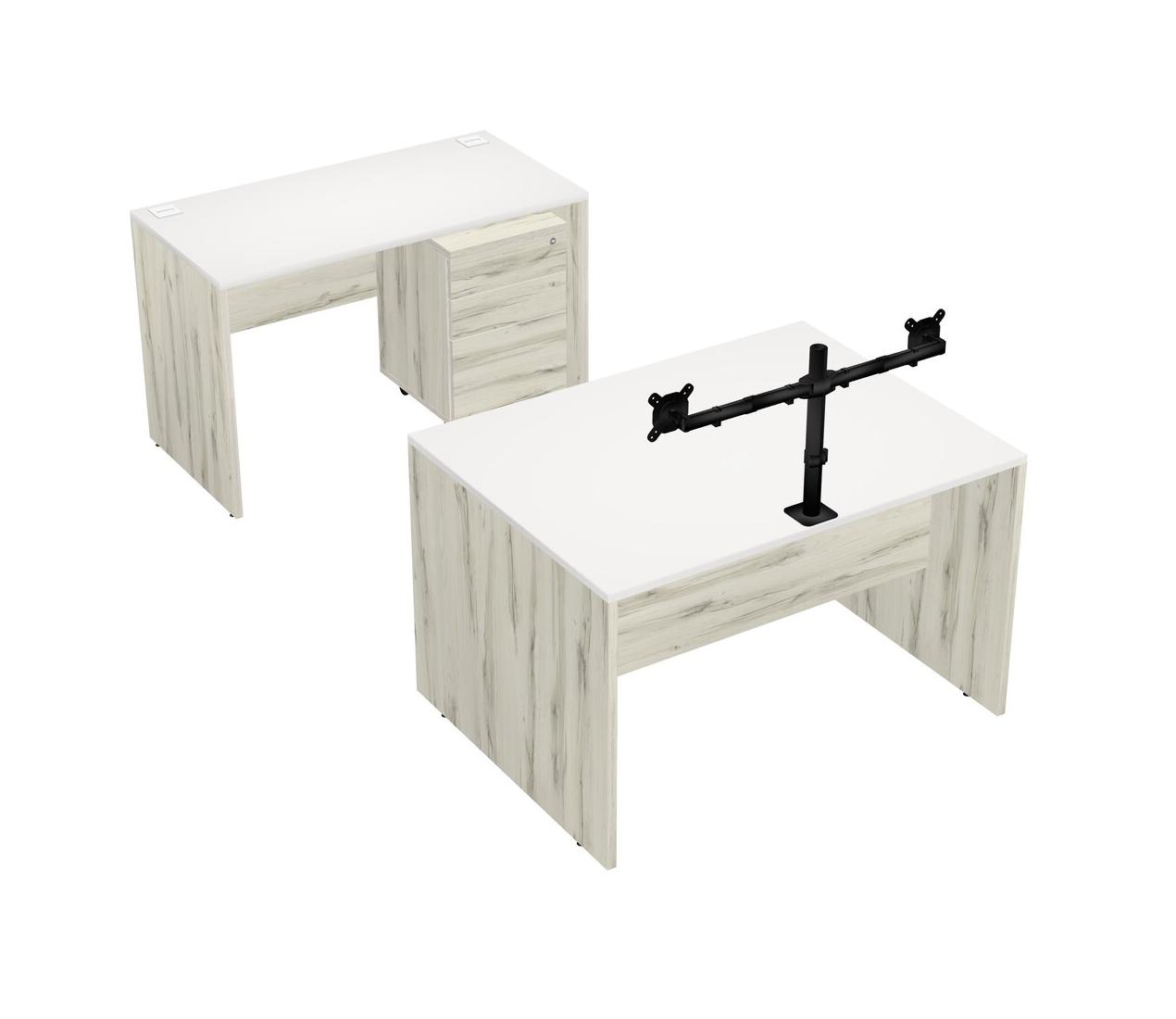 Office Parallel Desk Credenza Desk + Wooden Mobile Drawers + Monitor Arm (double Arms)