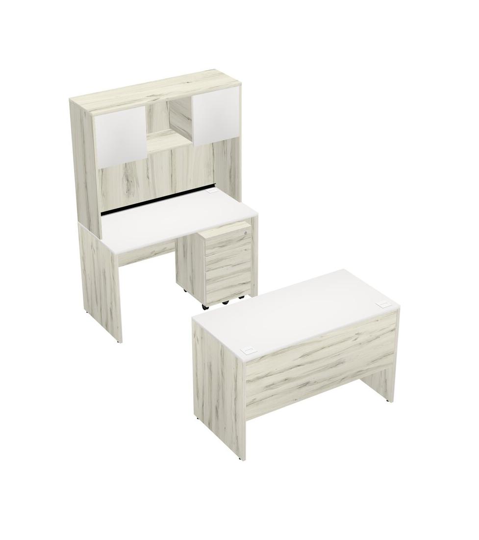 Office Parallel Desk Credenza Desk + Wooden Mobile Drawers + Hutch