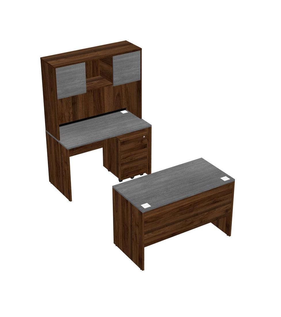 Office Parallel Desk Credenza Desk + Wooden Mobile Drawers + Hutch