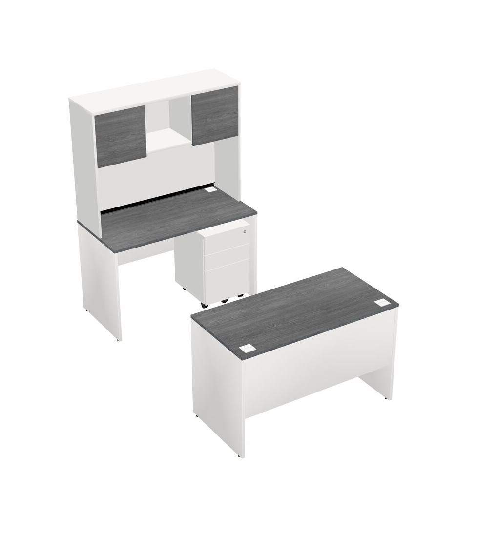 Office Parallel Desk Credenza Desk + Wooden Mobile Drawers + Hutch