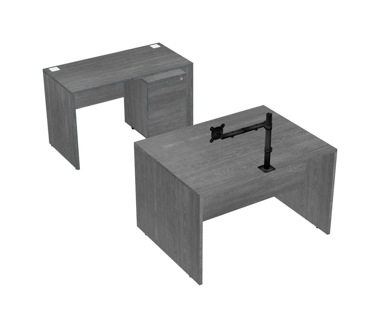 Office Parallel Desk Credenza Desk + Wooden Mobile Drawers + Monitor Arm (single Arm)