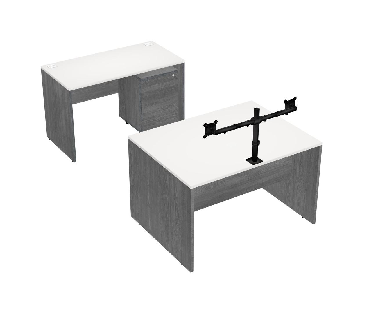Office Parallel Desk Credenza Desk + Wooden Mobile Drawers + Monitor Arm (double Arms)
