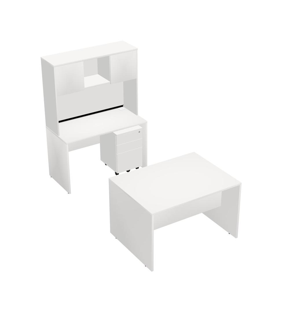 Office Parallel Desk Credenza Desk + Wooden Mobile Drawers + Hutch
