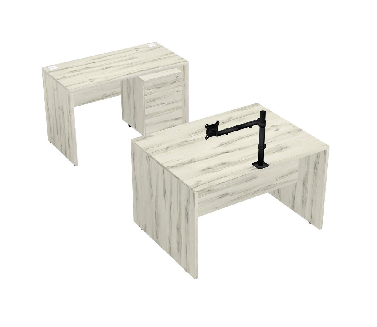 Office Parallel Desk Credenza Desk + Wooden Mobile Drawers + Monitor Arm (single Arm)