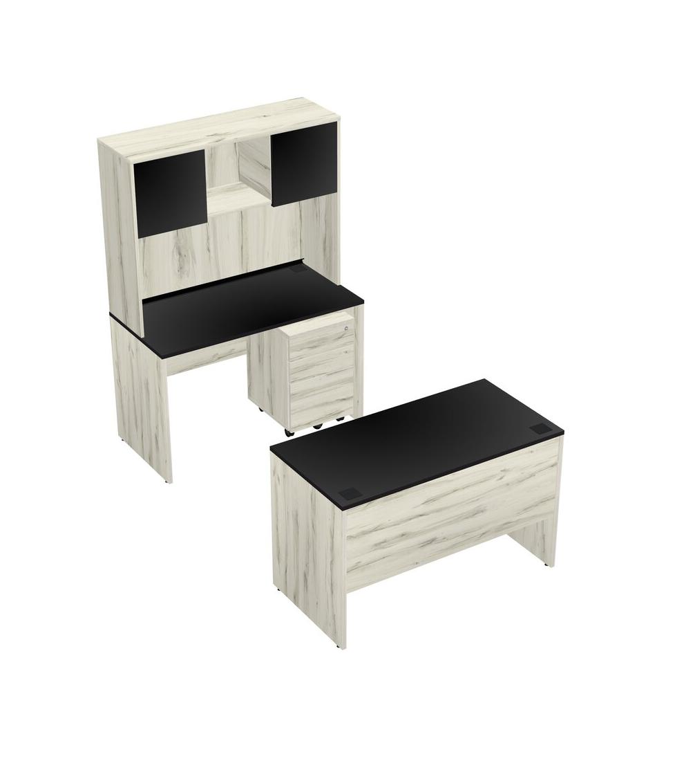 Office Parallel Desk Credenza Desk + Wooden Mobile Drawers + Hutch