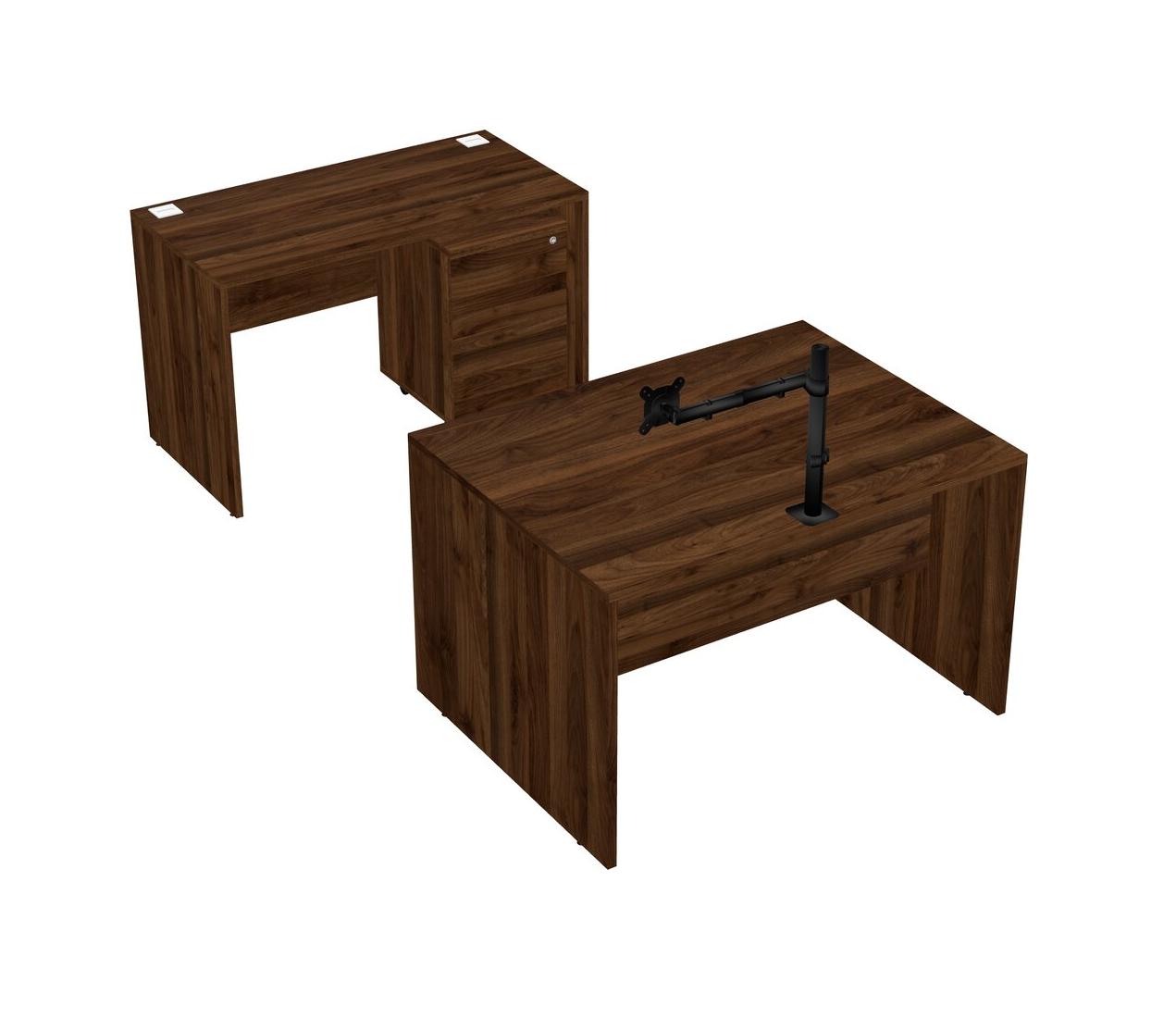 Office Parallel Desk Credenza Desk + Wooden Mobile Drawers + Monitor Arm (single Arm)