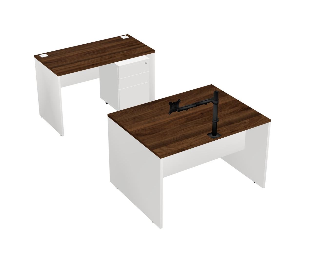 Office Parallel Desk Credenza Desk + Wooden Mobile Drawers + Monitor Arm (single Arm)