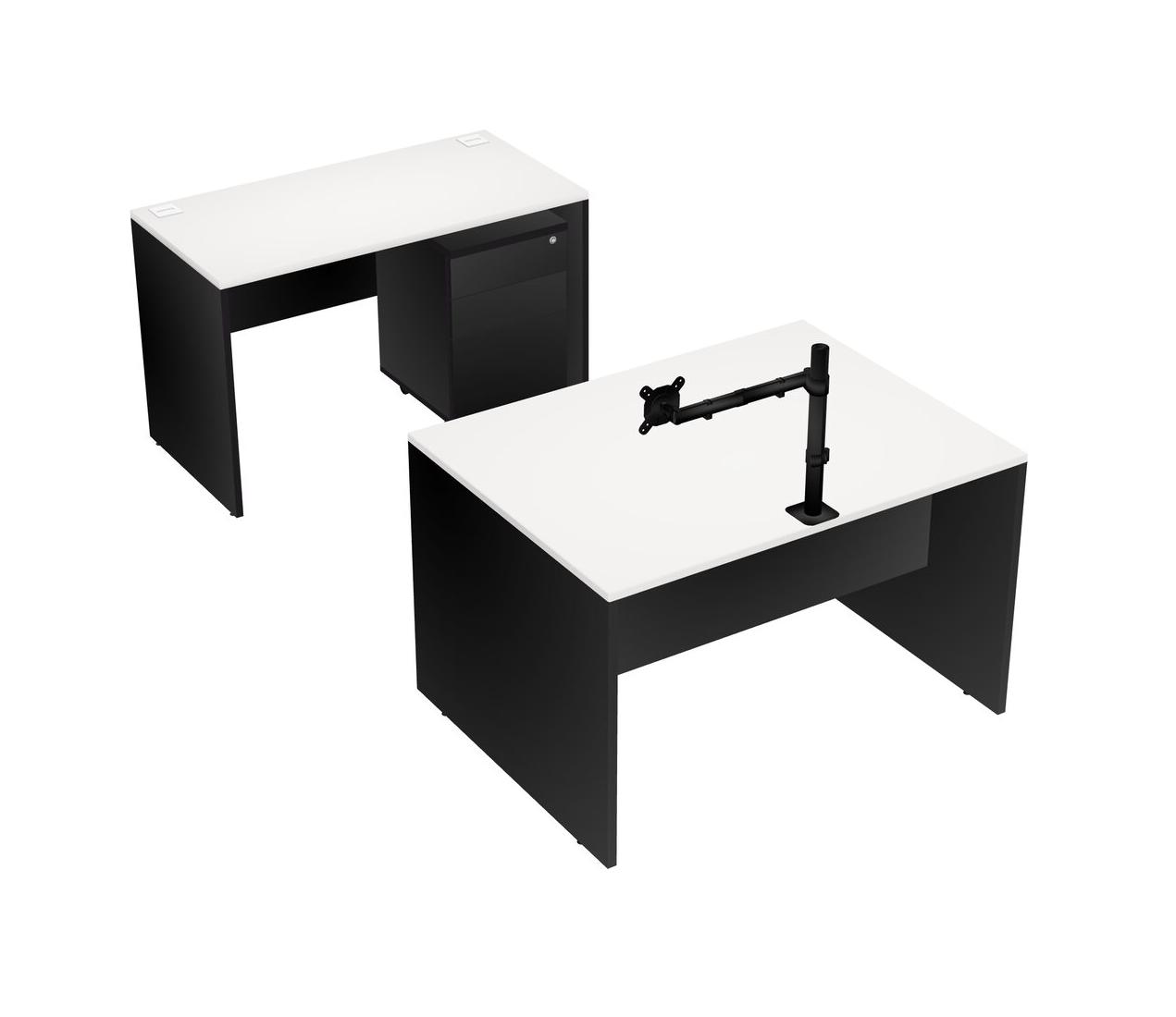Office Parallel Desk Credenza Desk + Wooden Mobile Drawers + Monitor Arm (single Arm)