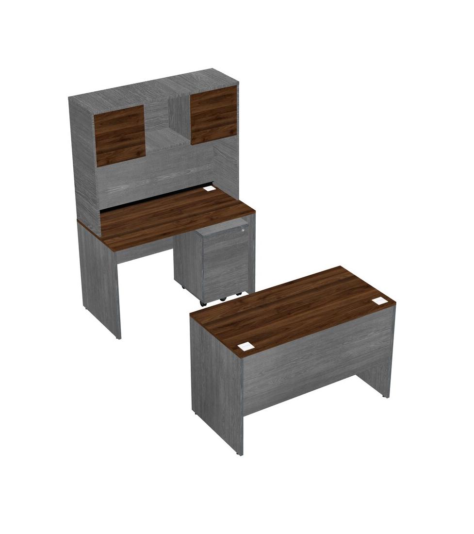 Office Parallel Desk Credenza Desk + Wooden Mobile Drawers + Hutch