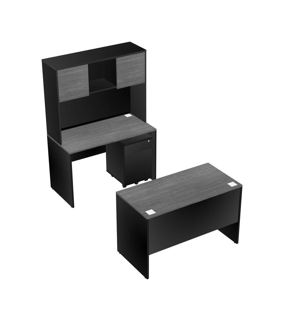 Office Parallel Desk Credenza Desk + Wooden Mobile Drawers + Hutch