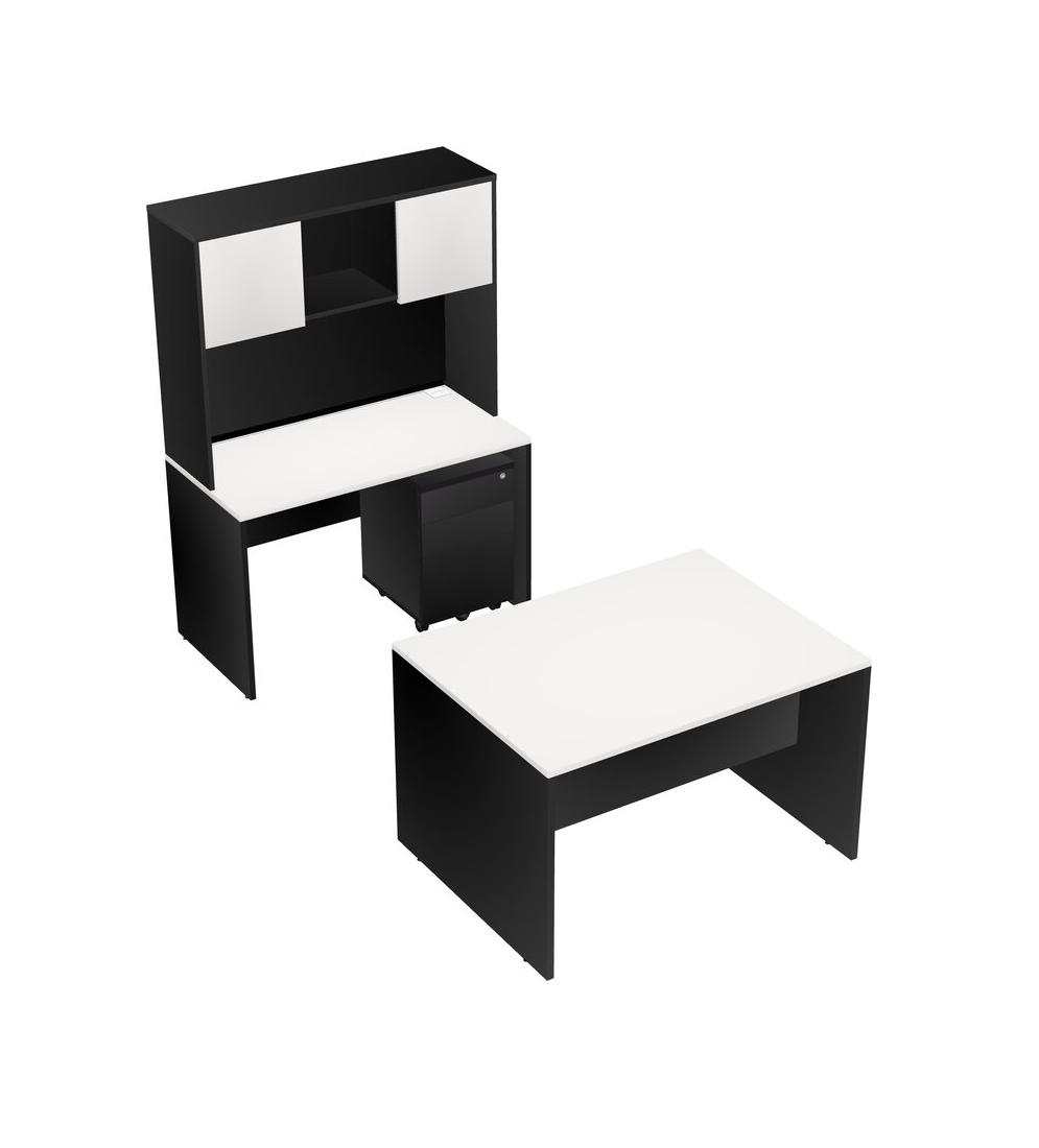 Office Parallel Desk Credenza Desk + Wooden Mobile Drawers + Hutch