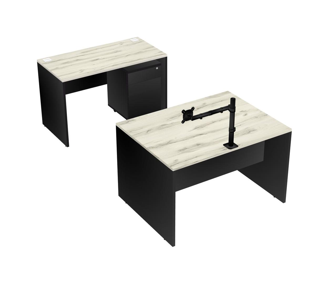 Office Parallel Desk Credenza Desk + Wooden Mobile Drawers + Monitor Arm (single Arm)
