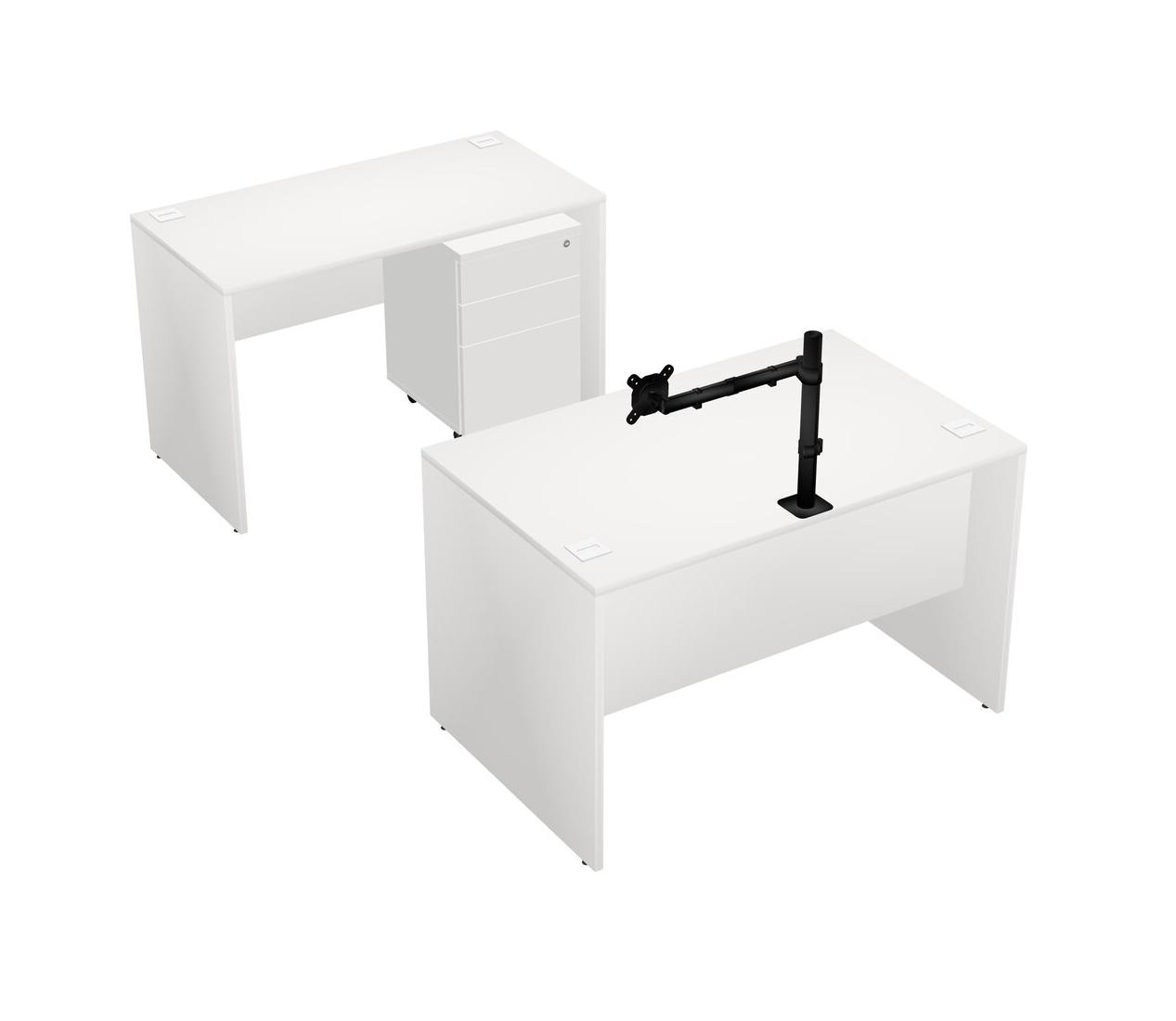 Office Parallel Desk Credenza Desk + Wooden Mobile Drawers + Monitor Arm (single Arm)